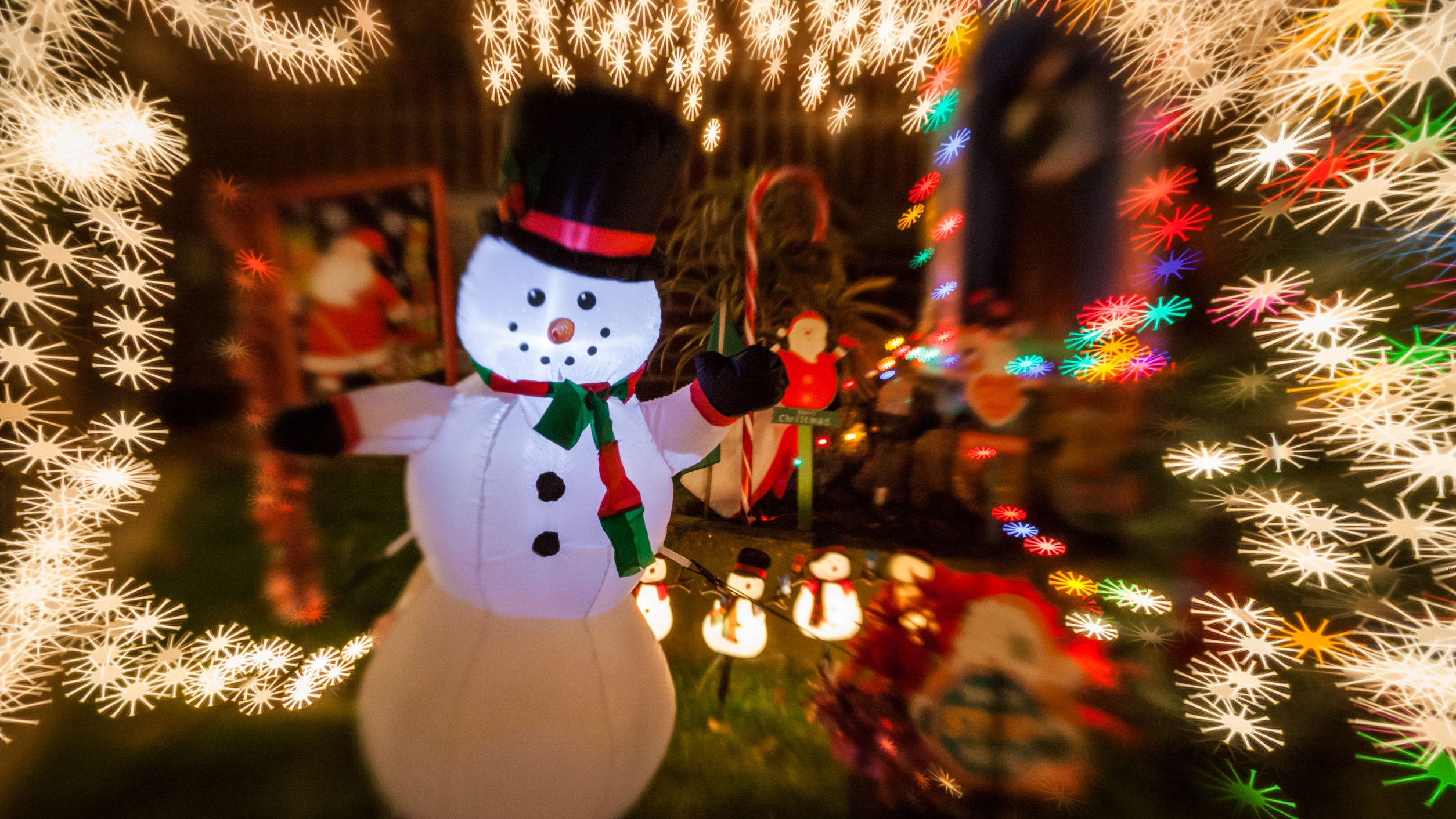 Consequently, your neighbor did the same. Except for a few differences. Their snowman towers above the neighborhood with inflatable glory. A light up Santa on a motorcycle graces their roof. The International Space Station can see the lights covering their home from space. Your neighbors also wear sunglasses at night.